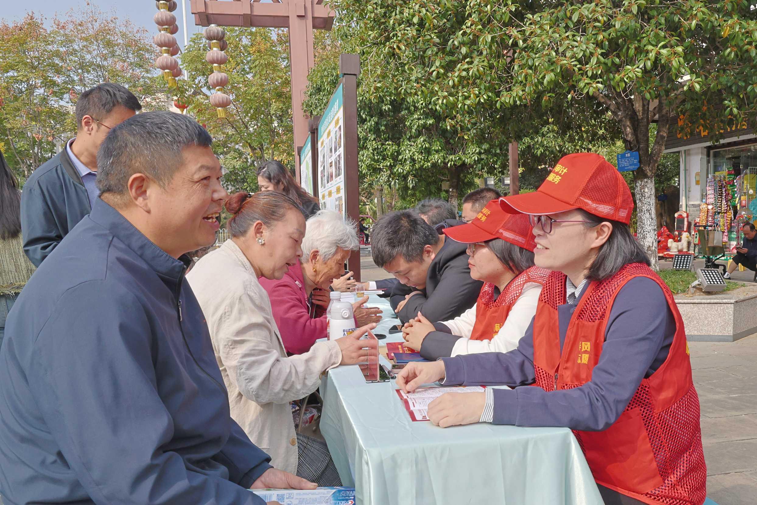圖為恩施土家族苗族自治州審計(jì)局工作人員“擺攤”普法。