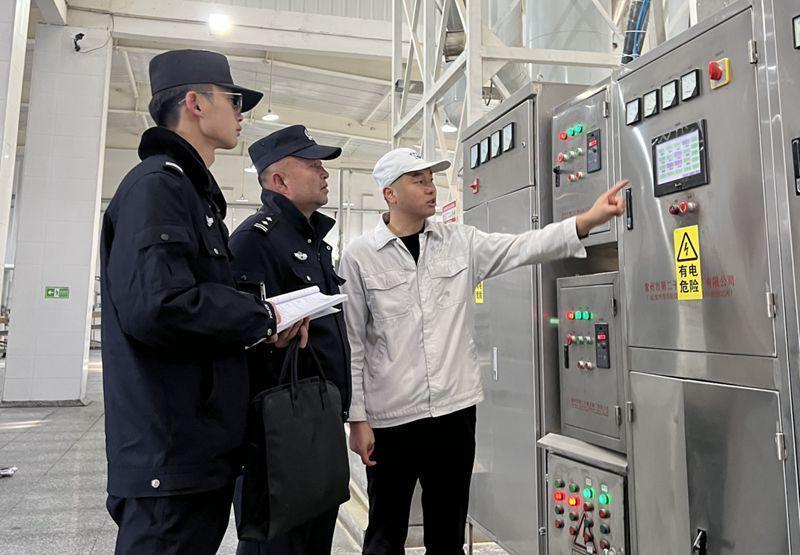 日頭斜過鋅鋼板廠房的尖頂,甘肅省張掖市民樂縣工業(yè)園區(qū)裹著細沙的風,簌簌擦過水泥路面。這片沿戈壁鋪開的園區(qū)里,廠房新舊交錯,部分墻皮已被風蝕得泛白。兩名民警一前一后穿行其間,一人壓了壓帽檐留意周邊環(huán)境,一人手持臺賬仔細核對著門牌,朝著下一間廠區(qū)走去。