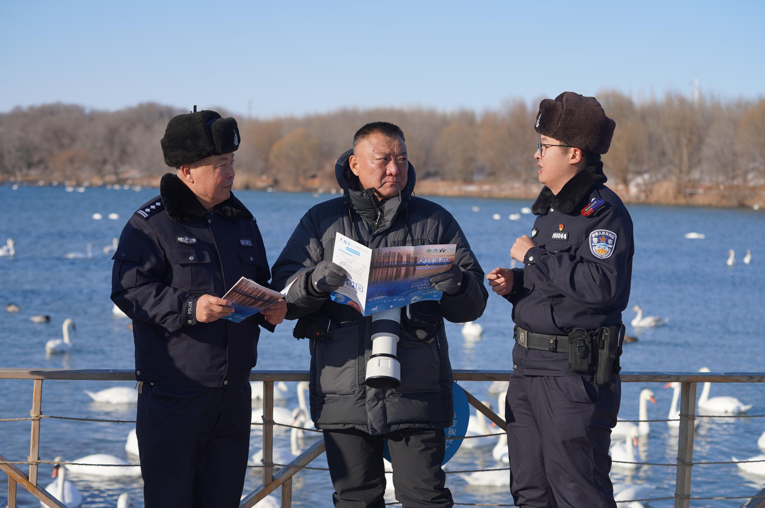 “天鵝警護隊”并非單純執(zhí)行警務(wù),日常工作中,隊員們在開展治安巡邏、處理游客求助的同時,格外注重對天鵝等候鳥及其棲息環(huán)境的巡護。勸阻驚擾候鳥行為、撿拾湖區(qū)垃圾、觀察記錄鳥類活動狀況、向游客宣傳生態(tài)保護知識,已成為他們的常規(guī)任務(wù)。