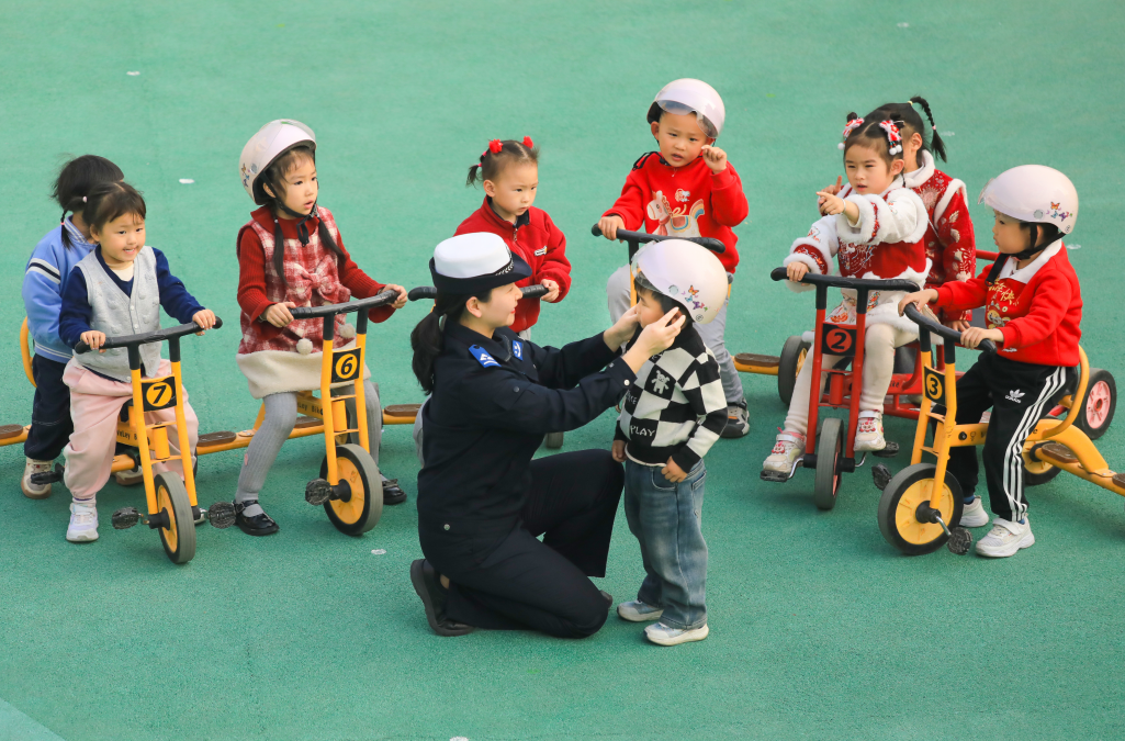 圖為1月19日,民警走進(jìn)章貢區(qū)第二十二保育院,在寓教于樂中為孩子們普及交通安全知識。