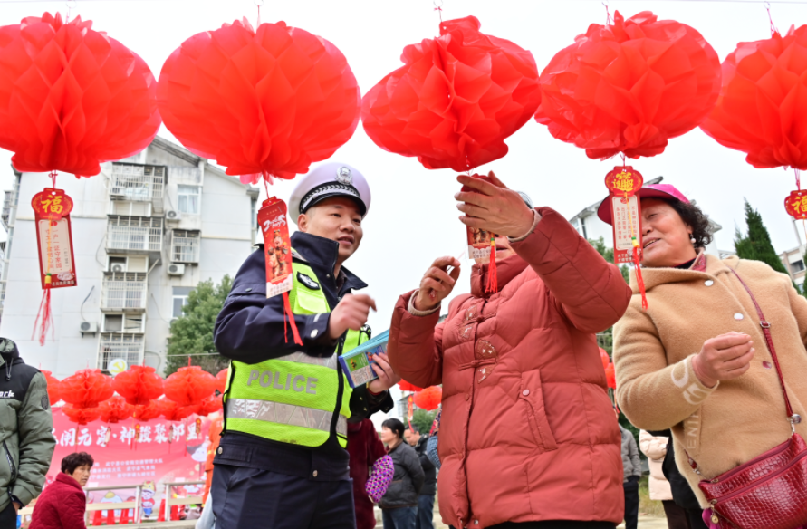 元宵節(jié)來臨,江西省武寧縣公安局交管大隊組織民輔警走進(jìn)社區(qū),舉辦“慶元宵、猜燈謎、學(xué)交規(guī)”活動,以群眾喜聞樂見的方式宣傳交通安全法律法規(guī)。