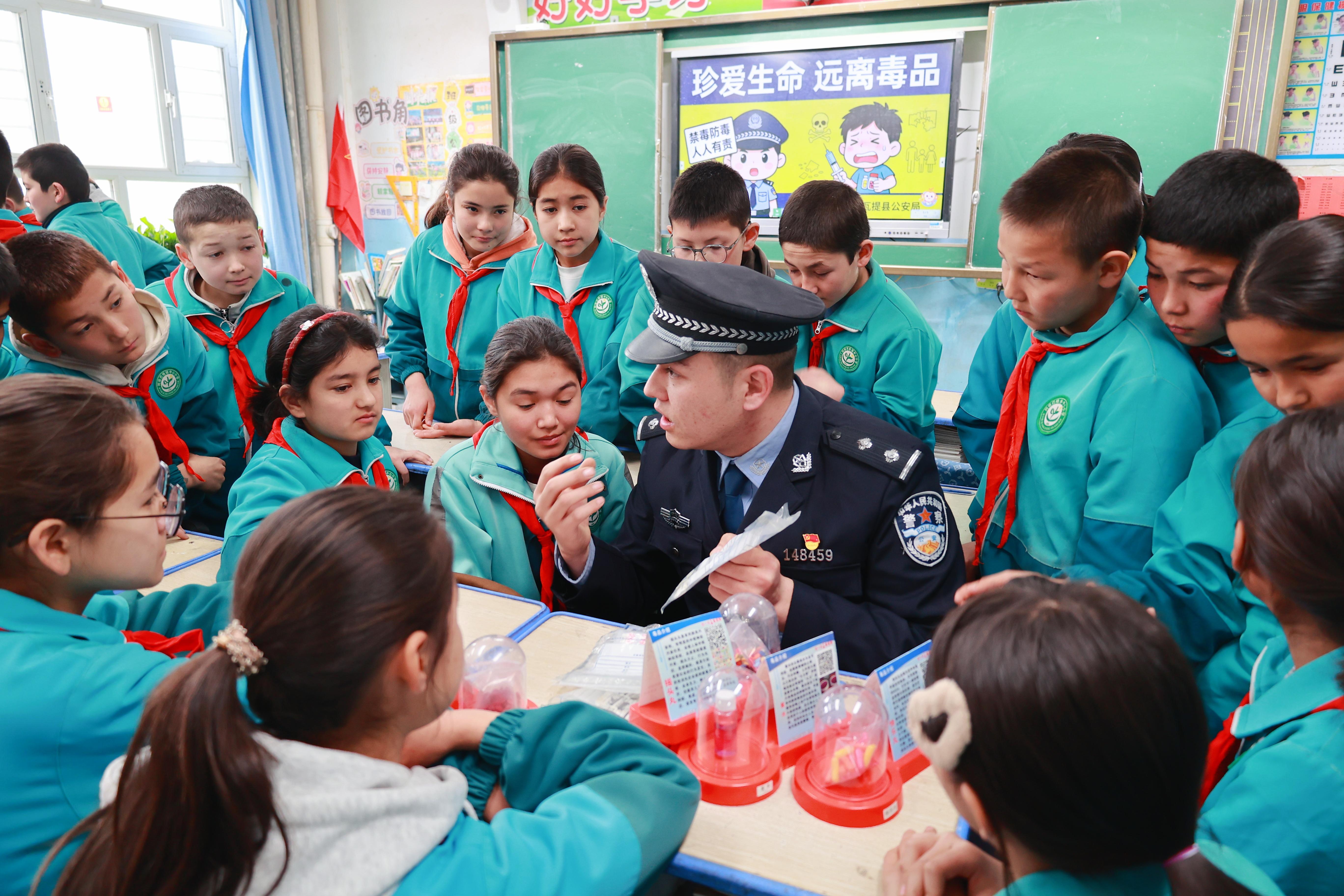 為進一步筑牢校園禁毒防線,增強青少年法治意識,3月16日,新疆維吾爾自治區(qū)阿瓦提縣公安局阿依巴格鎮(zhèn)派出所民警走進轄區(qū)校園開展禁毒宣傳活動。民警通過展示毒品仿真模型、播放禁毒宣傳視頻、互動交流等方式,向同學們講解真實案例及禁毒知識,增強學生識毒、防毒、拒毒的意識和能力,守護青少年健康成長。
