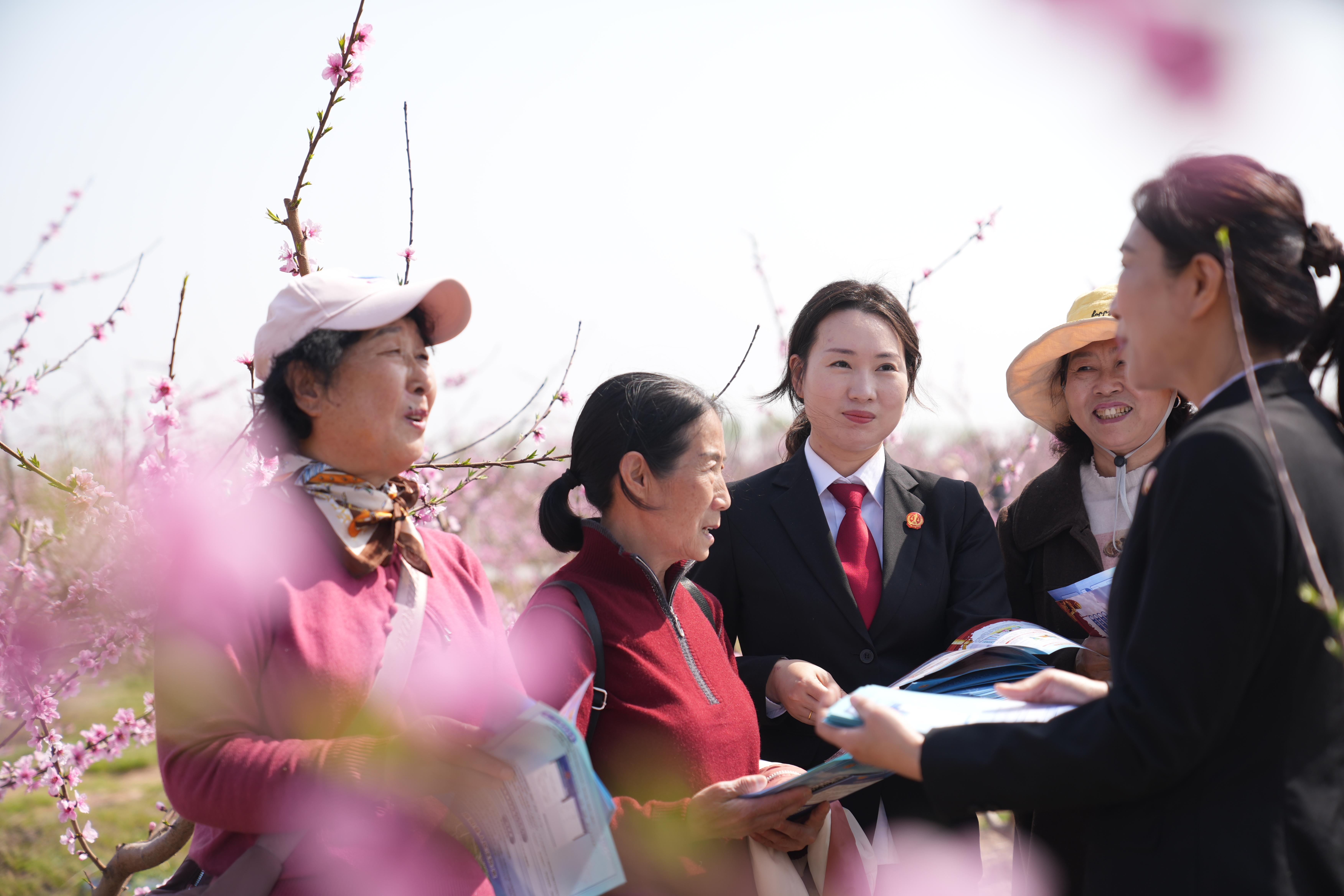 圖為3月30日,新鄉(xiāng)市原陽縣橋北人民法庭干警在“鄉(xiāng)見·桃花源”觀景點向游客發(fā)放民法典、消費者權益保護法等法治宣傳資料。