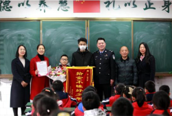 “拾金不昧好少年!”日前,四川資陽市雁江七小,失主吳先生和民警送來錦旗和《表揚(yáng)信》,希望學(xué)校公開表揚(yáng)該校四年級(jí)學(xué)生鐘一瑁,讓更多孩子向他學(xué)習(xí),一樣拾金不昧。