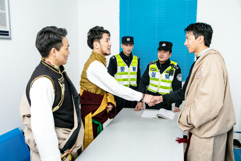 為了尊重藏族習(xí)俗,派出所的民警標(biāo)配是“四個(gè)一”:包里隨時(shí)裝著一條哈達(dá)、一塊茶磚,見面一句藏語問候,轄區(qū)至少交一個(gè)藏族朋友。所里會(huì)說藏語、懂得習(xí)俗的“雙語警官”逐漸多了起來,他們奔走在街區(qū)、院落、醫(yī)院,遇到矛盾糾紛時(shí),用鄉(xiāng)音鄉(xiāng)情化解于無形,用象征感情的白色哈達(dá)換回了象征尊重的黃色哈達(dá)。