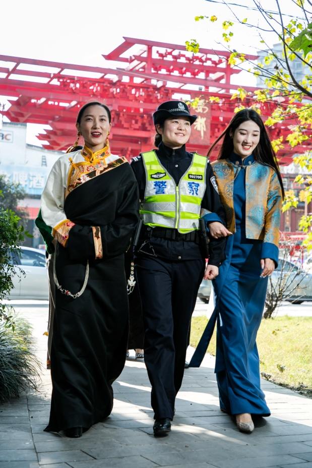 現(xiàn)在,“漿洗杰巴”義警隊(duì)已經(jīng)發(fā)展到16人,除了藏族群眾,還有街道社區(qū)的藏族干部、大學(xué)藏語老師等。正是因?yàn)橛辛嗣窬谛摹⒉刈迦罕娙诔?,才有三融工作法的最后一步——融合,警民攜手共建共治,繪就美麗“楓”景。