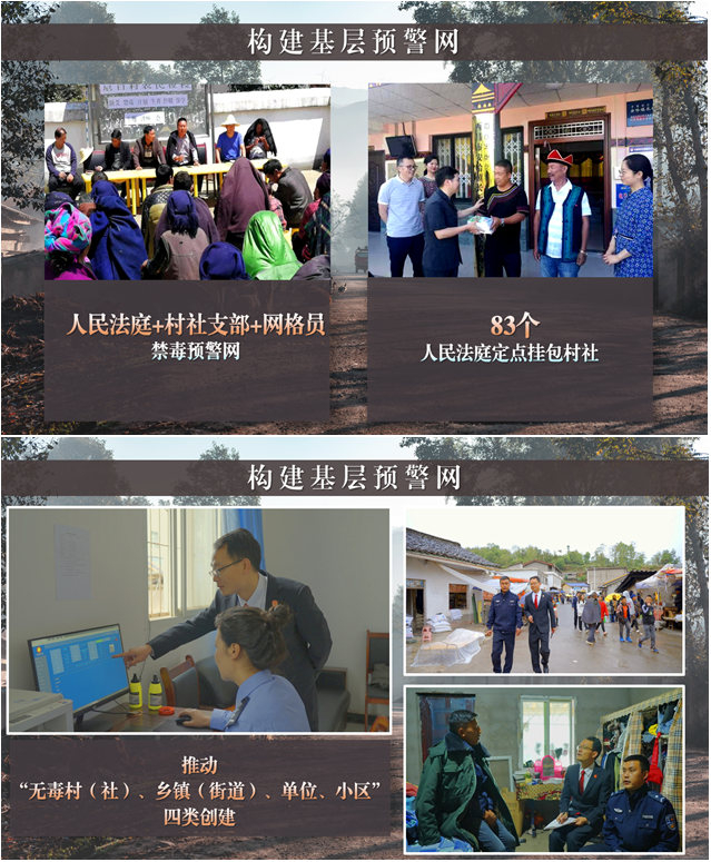 借鑒“楓橋經(jīng)驗”,構(gòu)建“人民法庭+村社支部+網(wǎng)格員”禁毒預(yù)警模式,全州83個人民法庭定點掛包村社、包干到人,定期走村入戶教導(dǎo)群眾防毒,培訓(xùn)督導(dǎo)網(wǎng)格員落實毛發(fā)、污水檢測,從源頭上預(yù)防和減少涉毒違法犯罪,推動“無毒村(社)、鄉(xiāng)鎮(zhèn)(街道)、單位、小區(qū)”四類創(chuàng)建。