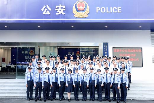 隨后,景波區(qū)長、周剛副局長為華西壩派出所揭牌,全體參加儀式的同志合影留念。