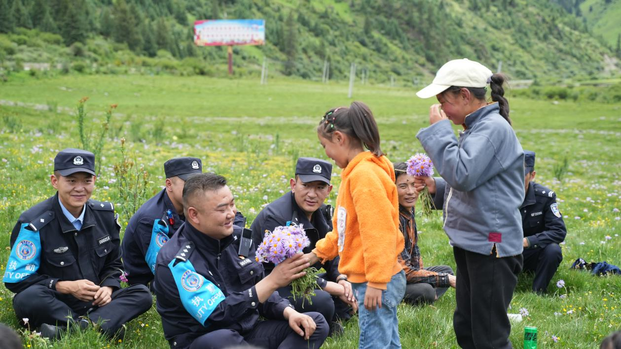 他要求派出所大門24小時都為群眾敞開,保證服務不缺位;為找到牧民丟失的牦牛,他帶領戰(zhàn)友兩天兩夜翻雪山,住牛棚,贏得原創(chuàng)《雪域之光》MV的禮贊;為保護牧民牦牛不被野狼侵擾,他帶領戰(zhàn)友徹夜守護。真心一定可以換來民心。寒冬時節(jié),群眾為派出所送來取暖用的牛糞;盛夏時節(jié),孩子們?yōu)樗蛠碛H手采摘的花環(huán);花海中的黑帳篷,是他最美的偶遇;轄區(qū)群眾最擔心的事,就是害怕他調(diào)走......這就是對為民快要禿了頭的“小高”所長追光路上最好的禮遇。