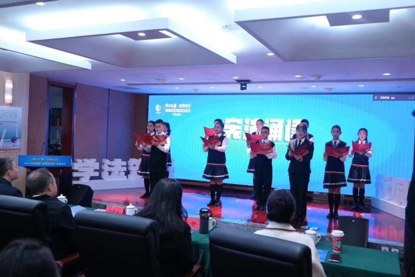 主題活動在學(xué)生代表們憲法誦讀中拉開序幕,以此弘揚憲法精神,增強學(xué)生憲法意識,為推進全面依法治區(qū)營造了濃厚的法治氛圍。