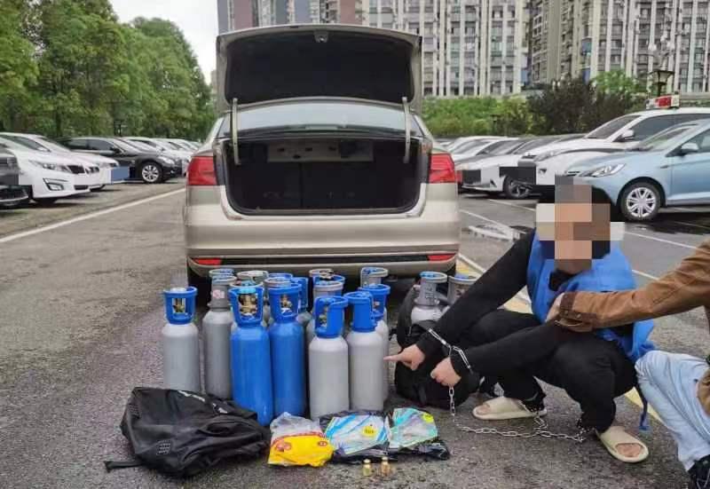 經(jīng)過(guò)專(zhuān)案組查實(shí):自2022年9月起,該團(tuán)伙由胡某某投資,廖某某通過(guò)視頻平臺(tái)聯(lián)系成都上家,以100元每罐的價(jià)格購(gòu)買(mǎi)“笑氣”,由蔣某某運(yùn)輸至仁壽縣城區(qū),由蔣某以250元—300元每罐的價(jià)格分銷(xiāo)給廖某某、祝某某等人,廖某某等人再販賣(mài)給他人吸食。該團(tuán)伙層級(jí)分明,分工明確,形成了“金字塔式”的銷(xiāo)售模式,涉案金額20余萬(wàn)元,非法獲利10余萬(wàn)元。專(zhuān)案組在仁壽縣、眉山市天府新區(qū)、成都市等地抓獲涉案人員8人,刑事拘留8人;查處涉及該案的非法使用“笑氣”行政案件30件,行政處罰93人,批評(píng)教育21人;繳獲“笑氣”量灌裝312升,繳獲涉案資產(chǎn)4.9萬(wàn)元。搗毀位于成都市龍泉驛某倉(cāng)庫(kù)內(nèi)的“笑氣”分裝窩點(diǎn)2個(gè),現(xiàn)場(chǎng)繳獲40升容量“笑氣”55瓶,分裝工具3套。