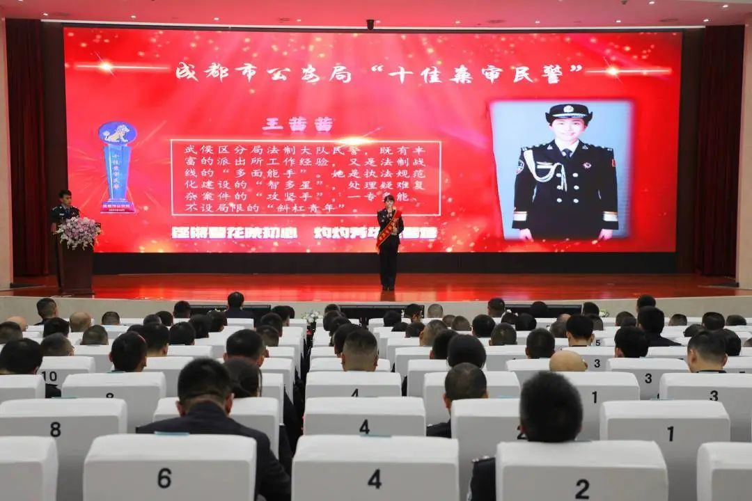 “鏗鏘警花映初心,灼灼芳華綻警營。武侯區(qū)分局法制大隊(duì)的民警王茜茜,是活躍在公安法制隊(duì)伍里的‘多面能手’,是執(zhí)法規(guī)范化建設(shè)的‘智多星’……她是一專多能、不設(shè)局限的‘斜杠青年’,在浩瀚的知識(shí)宇宙里永攀高峰、不斷進(jìn)取,先后通過了國家法律職業(yè)資格考試、高級(jí)執(zhí)法資格考試,考取了教師資格證,申請(qǐng)了公職律師……她是成都市公安局‘十佳案審民警’——王茜茜!”