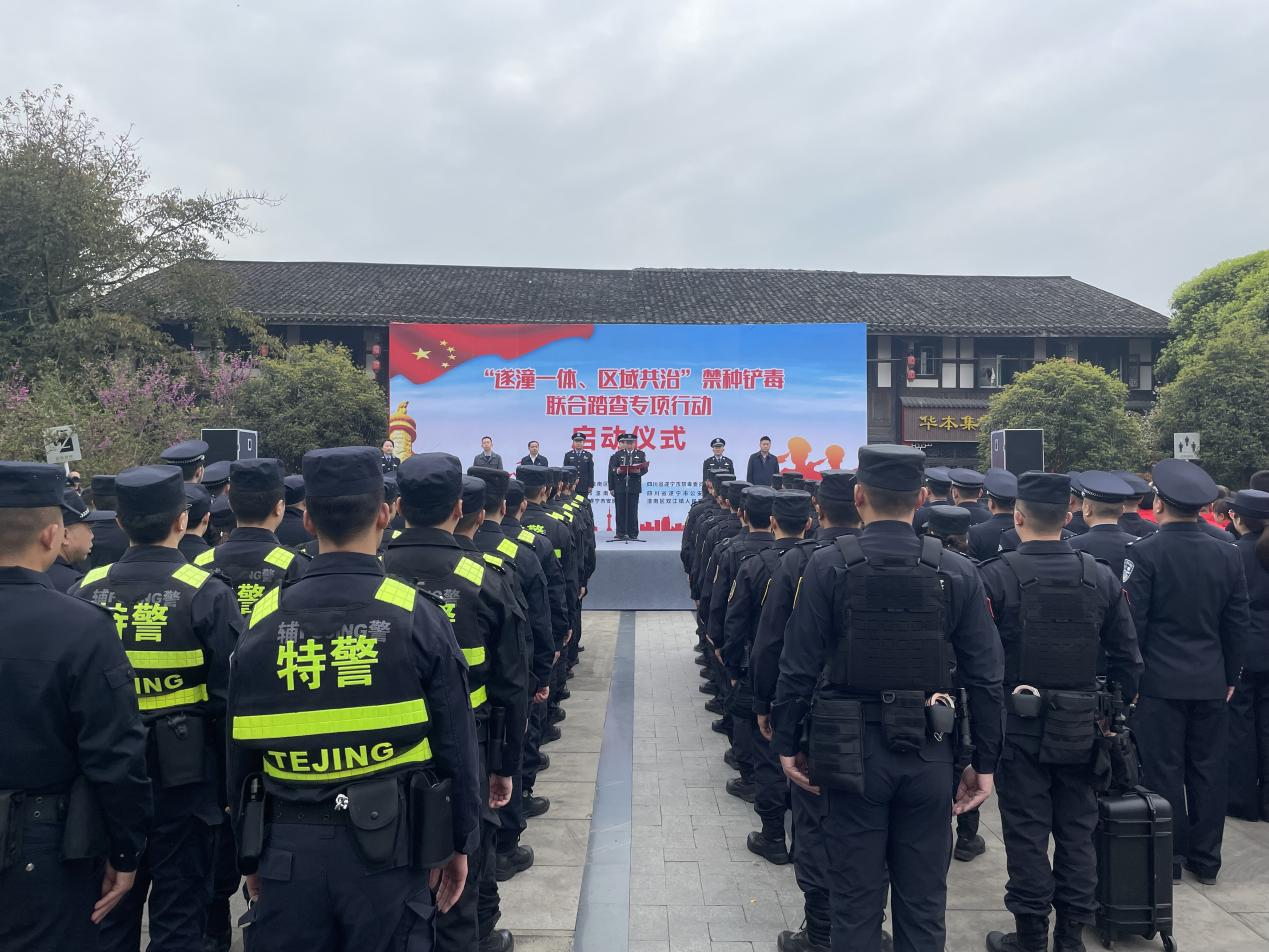 為進(jìn)一步鞏固川渝兩地禁毒工作成果,切實加強兩地禁毒工作的協(xié)作配合,堅決遏制非法種植毒品原植物問題反彈,力爭實現(xiàn)“遂潼一體化”非法種植毒品原植物基本禁絕的目標(biāo)。3月20日上午,川渝“遂潼一體、區(qū)域共治”禁種鏟毒聯(lián)合踏查專項行動啟動儀式在重慶市潼南區(qū)雙江鎮(zhèn)楊闇公舊居廣場舉行,全面拉開兩地禁種鏟毒聯(lián)合踏查攻堅戰(zhàn)的序幕。潼南區(qū)禁毒辦、潼南區(qū)公安局相關(guān)警種,四川省遂寧市禁毒辦、遂寧市安居區(qū)公安局相關(guān)警種,出席啟動儀式。警用無人機專業(yè)操控人員,遂潼兩地毗鄰鎮(zhèn)(街道)代表、專職社工、禁毒志愿者代表200余人參加啟動儀式。