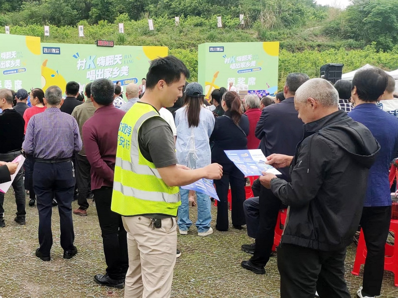 為進一步提高廣大農村居民的交通安全意識,有效預防各類道路交通事故,簡陽市道安辦組織公安交警和禾豐鎮(zhèn)交管辦拓展宣傳渠道,從過去的“搭臺唱戲”轉變?yōu)椤敖枧_唱戲”,利用K歌大賽期間人多、車多,人流集中等有利時機,將道路交通安全宣傳與全民K歌活動深度融合,組織公安交警和交管員勸導員走進K歌現(xiàn)場持續(xù)開展文明交通宣傳勸導活動。