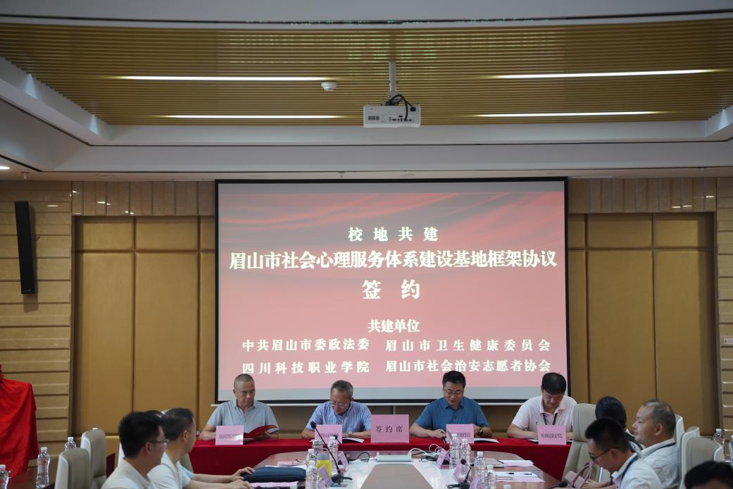 簽約儀式上,眉山市委政法委、市衛(wèi)生健康委、四川科技職業(yè)學院、市社會治安志愿者協(xié)會分別就進一步推動眉山市社會心理服務體系建設進行發(fā)言,共同簽署《共建眉山市社會心理服務體系建設基地框架協(xié)議》,并為四川科技職業(yè)學院“校地共建單位”揭牌和眉山市心理健康知識宣傳志愿服務隊授牌、授旗。