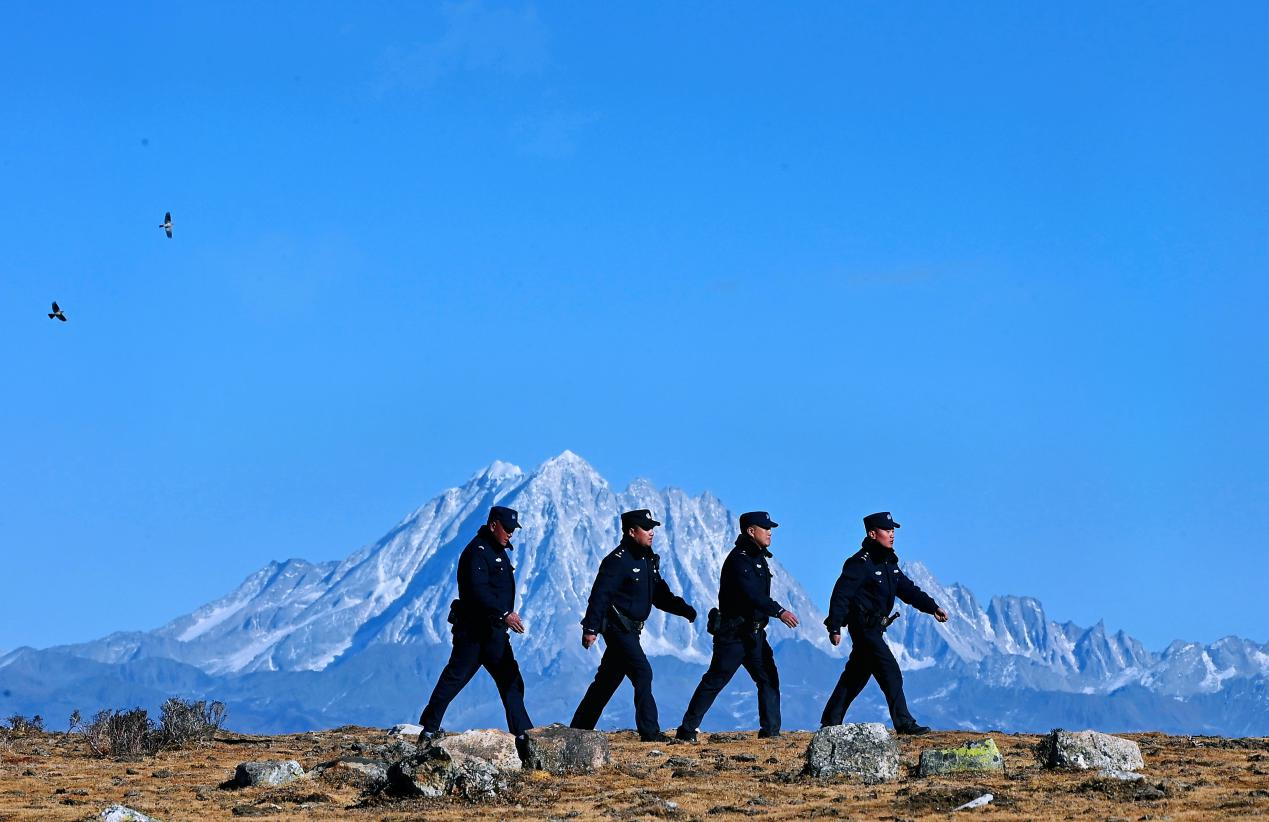 12月18日清晨,氣溫只有零下8攝氏度,警務(wù)站副站長(zhǎng)土登郎加帶領(lǐng)著輔警扎西澤仁、仁青、斯郎多吉開(kāi)始了一天的例行巡邏。湛藍(lán)的天空下,遠(yuǎn)方的雅拉雪山巍峨聳立,雄鷹在空中展翅翱翔,在他們的腳下,是亞洲迄今探明的最大規(guī)模硬巖型單體鋰礦礦區(qū)。