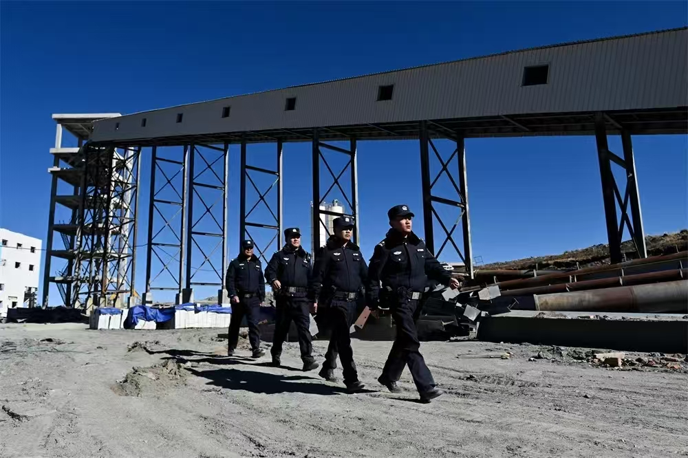 作為駐勤的第一批警力,土登郎加見(jiàn)證了警務(wù)站建立前后礦區(qū)的變化。在警務(wù)站建立之前,施工建設(shè)工地盜竊現(xiàn)象猖獗,建筑材料、施工工具被人順手牽羊偷走是常事。挖掘機(jī)需要使用的機(jī)油被盜竊者全部倒在地上,因?yàn)樗麄冎恍枰b油的鐵桶,導(dǎo)致挖掘機(jī)無(wú)法工作。甚至有時(shí)候,就連企業(yè)廚房里燉著的土雞都被人連鍋端走。這般偷盜行為,讓礦山企業(yè)苦不堪言。