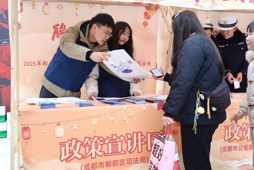 近日,四川省成都市郫都區(qū)“鵑城文明行 非遺賀‘元宵’”文明集市主題活動在萬達廣場舉辦。區(qū)公安分局、區(qū)司法局組織普法志愿服務隊在現(xiàn)場開展法律服務,將法治宣傳融入傳統(tǒng)文化,為居民送上一份特殊的“元宵祝?!?。