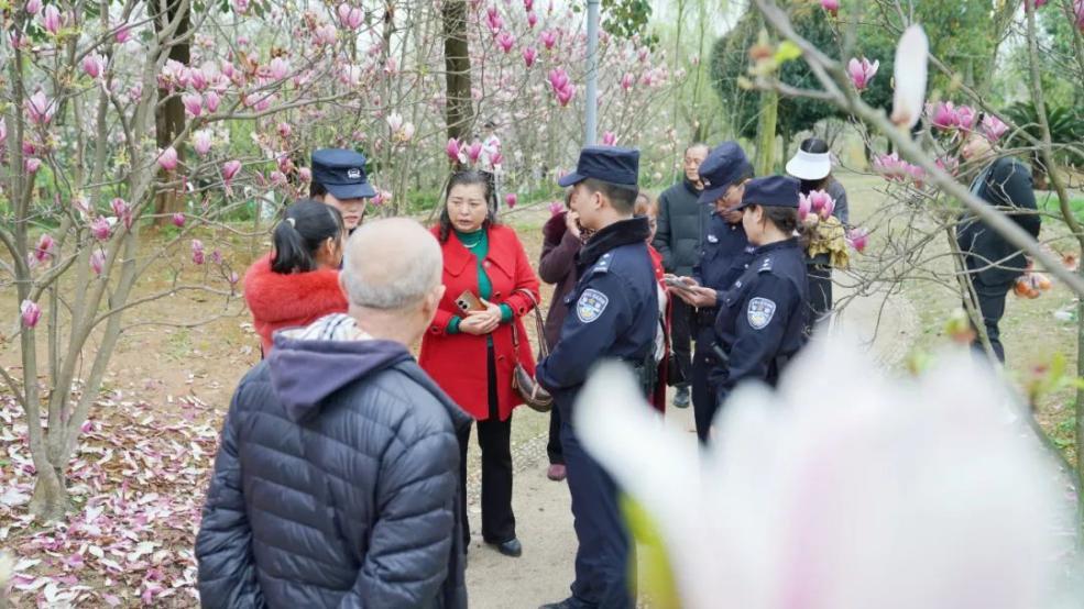 三月春風暖,四川眉山東坡文創(chuàng)園內游人如織。粉白花瓣紛飛間,一抹抹藏藍身影穿梭其中。春風十里,他們用腳步丈量平安,用笑容傳遞溫暖,讓這場春日之約更添安心與溫情。