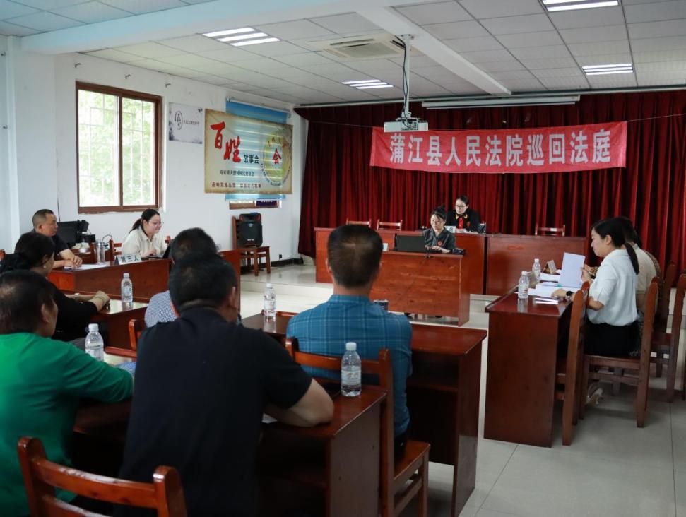 國(guó)徽高懸,法槌輕放。幾張桌椅,幾塊桌牌。一個(gè)莊嚴(yán)肅穆的巡回法庭,就這樣在四川省成都市蒲江縣某村村委會(huì)“落戶”了!