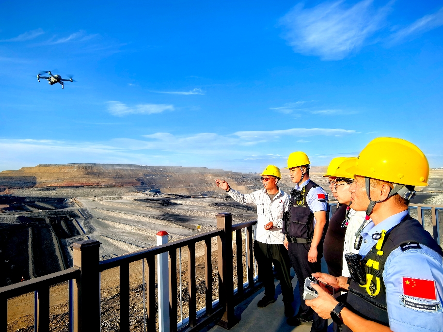 圖為8月5日下午,北山煤礦邊境派出所聯(lián)合當(dāng)?shù)刈匀毁Y源等部門啟用警用無人機(jī)進(jìn)行空中巡檢排查。