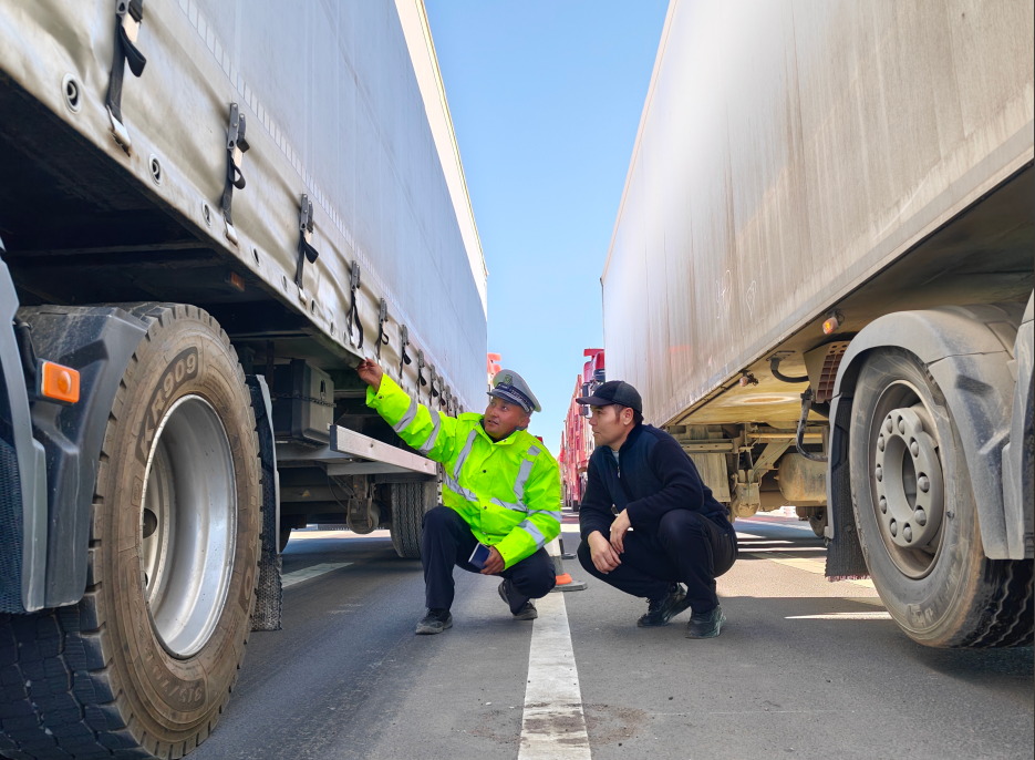 11月12日,新疆維吾爾自治區(qū)烏恰縣公安局交通管理大隊(duì)民警在G315線托云鄉(xiāng)吐爾尕特口岸停車區(qū)開展車輛安全隱患專項(xiàng)排查,全力筑牢口岸通道交通安全防線。