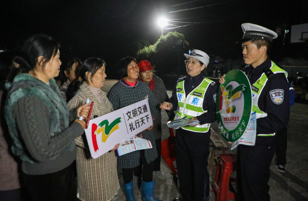 第14個122“全國交通安全日”將至,江西省橫峰縣公安局交管大隊組織民輔警深入轄區(qū)鄉(xiāng)鎮(zhèn),開展道路交通安全宣傳“夜話會”活動,通過嘮家常、以案釋法、現場互動等方式,向村民面對面宣講道路交通安全法律法規(guī),引導大家自覺摒棄交通陋習,安全文明出行。