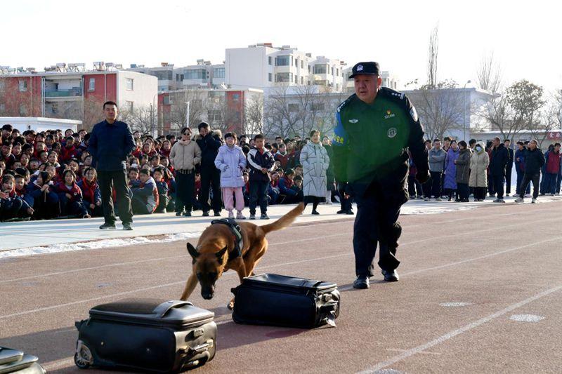 另一邊,警犬演示區(qū)域同樣人氣爆棚。訓導員帶著訓練有素的警犬登場,瞬間吸引了全體師生的目光。在訓導員的指令下,警犬依次展示了服從指令、搜爆排查等科目,動作迅猛精準、配合默契無間。演示過程中,訓導員還向同學們講解了警犬的品種、訓練日常,不少同學主動提問,近距離觀察警犬,感受人與犬之間的默契與堅守,現(xiàn)場掌聲此起彼伏。