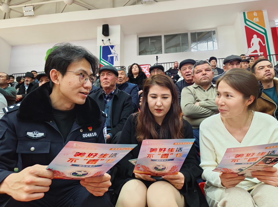 2月1日,新疆巴楚縣禁毒辦以第一屆“迎春杯”摔跤比賽為契機(jī),聯(lián)合禁毒委成員單位將禁毒宣傳陣地延伸至體育賽場。禁毒民警通過仿真毒品模型展示、發(fā)放禁毒宣傳手冊(cè)等方式,向觀賽群眾、運(yùn)動(dòng)員及工作人員普及禁毒知識(shí),呼吁大家自覺遠(yuǎn)離毒品,共同營造和諧穩(wěn)定的社會(huì)環(huán)境。