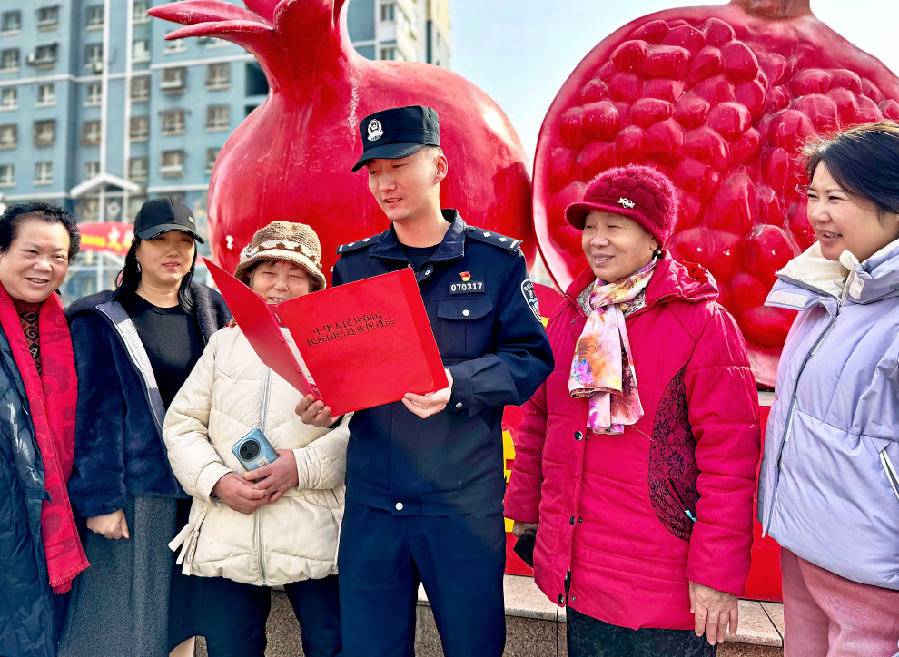 就在不遠處的廣場上,民警龐振超也被幾位居民圍住。他手里拿著一沓普法宣傳冊,講的卻是身邊的事兒:“咱們鄰居們之間平時互相幫襯,和和氣氣的,日子才能越過越好?!?/p>