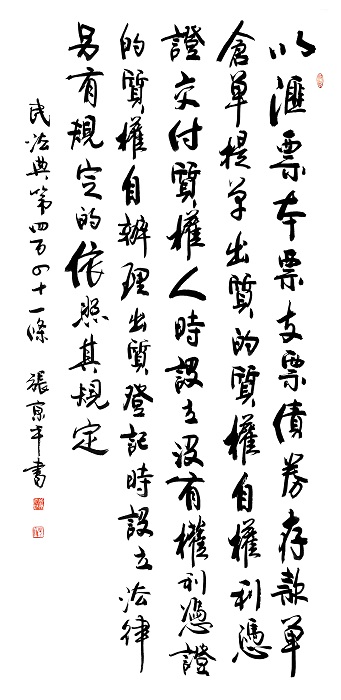 民法典第四百四十一條 以匯票、本票、支票、債券、存款單、倉單、提單出質(zhì)的,質(zhì)權(quán)自權(quán)利憑證交付質(zhì)權(quán)人時設立;沒有權(quán)利憑證的,質(zhì)權(quán)自辦理出質(zhì)登記時設立。法律另有規(guī)定的,依照其規(guī)定。