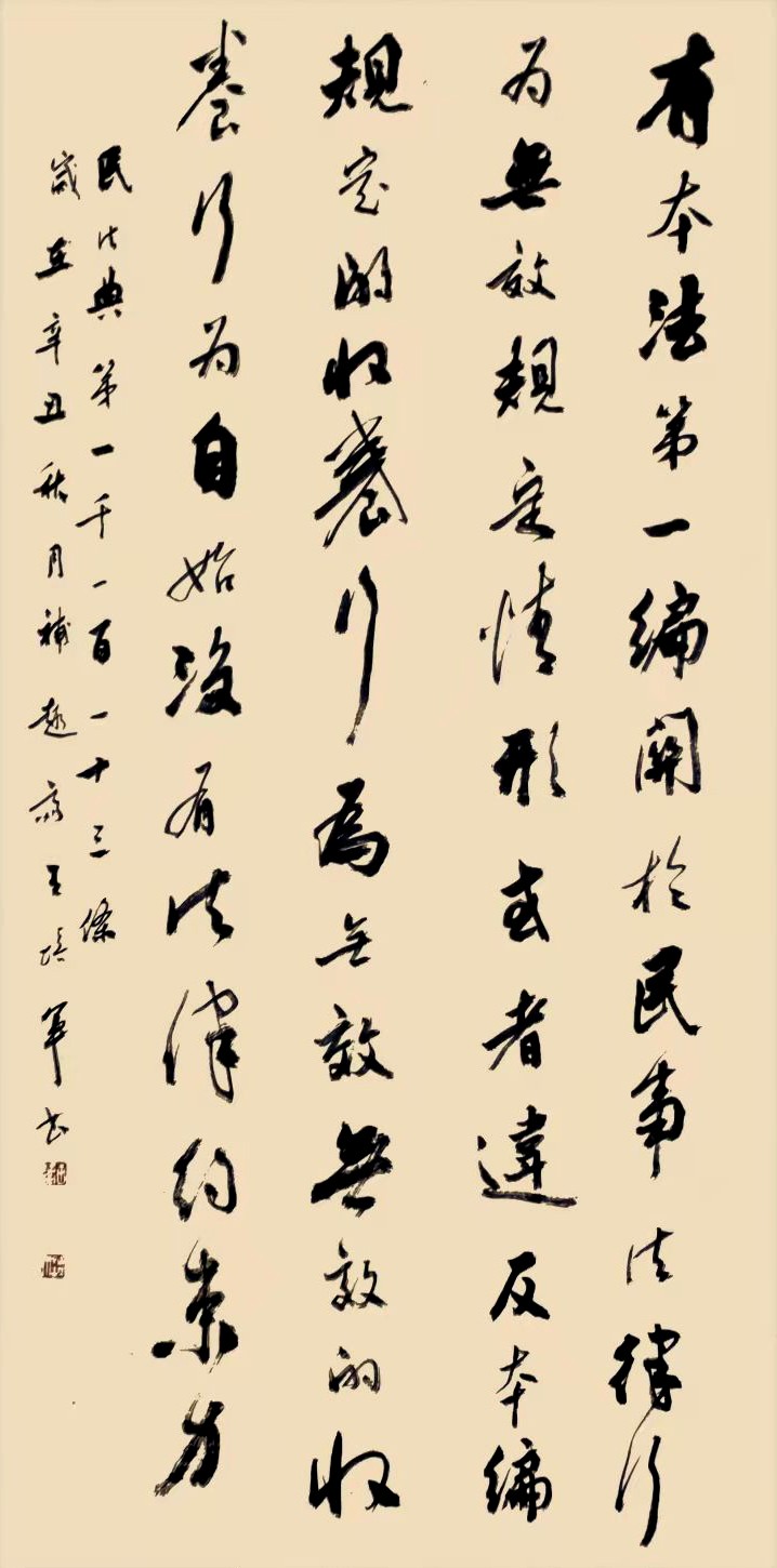 “書·法”活動(dòng)以書寫《中華人民共和國民法典》法條開筆,未來將對(duì)準(zhǔn)更多的法律。