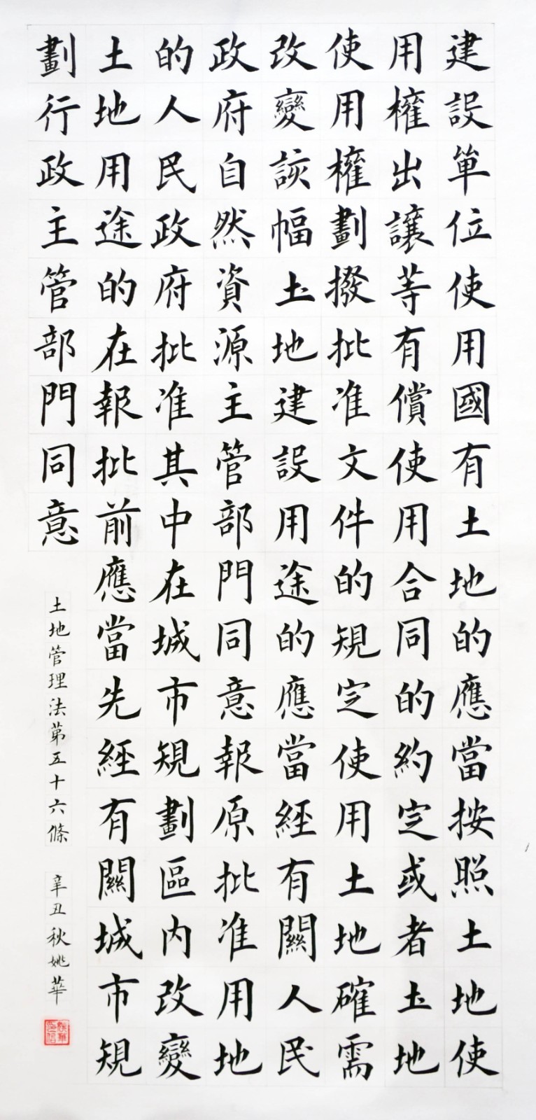 繼1600余位書法家參與書寫《中華人民共和國(guó)民法典》全部1260條法條之后,法治日?qǐng)?bào)社聯(lián)合自然資源部法規(guī)司、自然資源部書畫研究會(huì)和北京昌平書法家協(xié)會(huì),將筆端對(duì)準(zhǔn)土地管理“一法一條例”,即《中華人民共和國(guó)土地管理法》和《中華人民共和國(guó)土地管理法實(shí)施條例》。