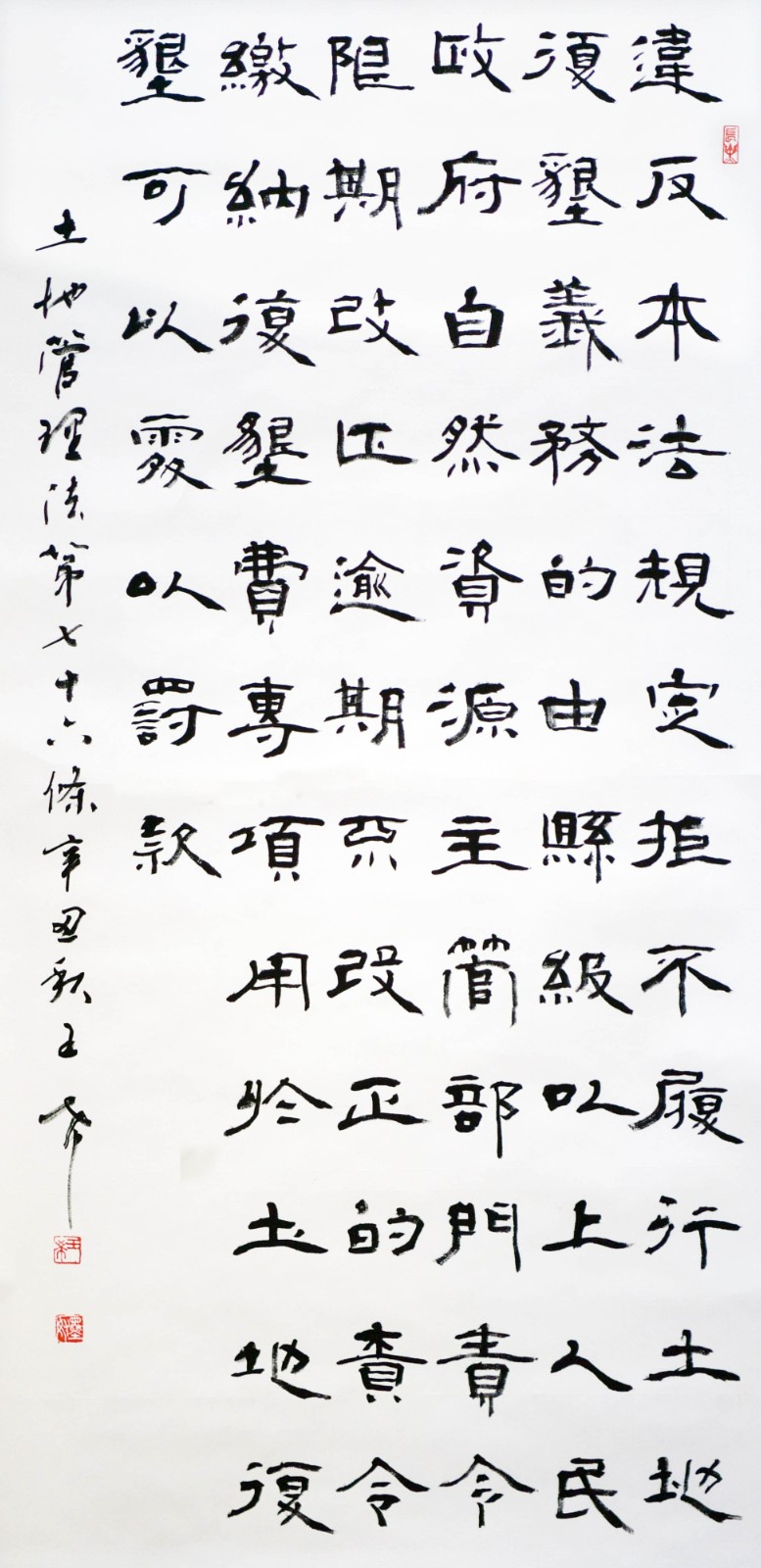 繼1600余位書法家參與書寫《中華人民共和國民法典》全部1260條法條之后,法治日報(bào)社聯(lián)合自然資源部法規(guī)司、自然資源部書畫研究會和北京昌平書法家協(xié)會,將筆端對準(zhǔn)土地管理“一法一條例”,即《中華人民共和國土地管理法》和《中華人民共和國土地管理法實(shí)施條例》。