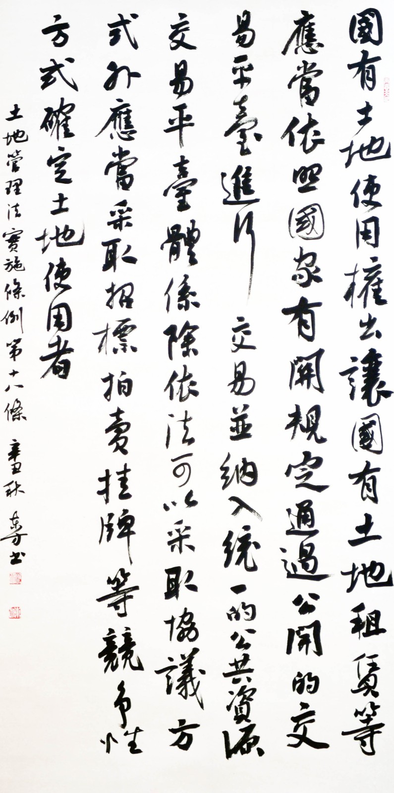繼1600余位書法家參與書寫《中華人民共和國民法典》全部1260條法條之后,法治日報(bào)社聯(lián)合自然資源部法規(guī)司、自然資源部書畫研究會(huì)和北京昌平書法家協(xié)會(huì),將筆端對準(zhǔn)土地管理“一法一條例”,即《中華人民共和國土地管理法》和《中華人民共和國土地管理法實(shí)施條例》。