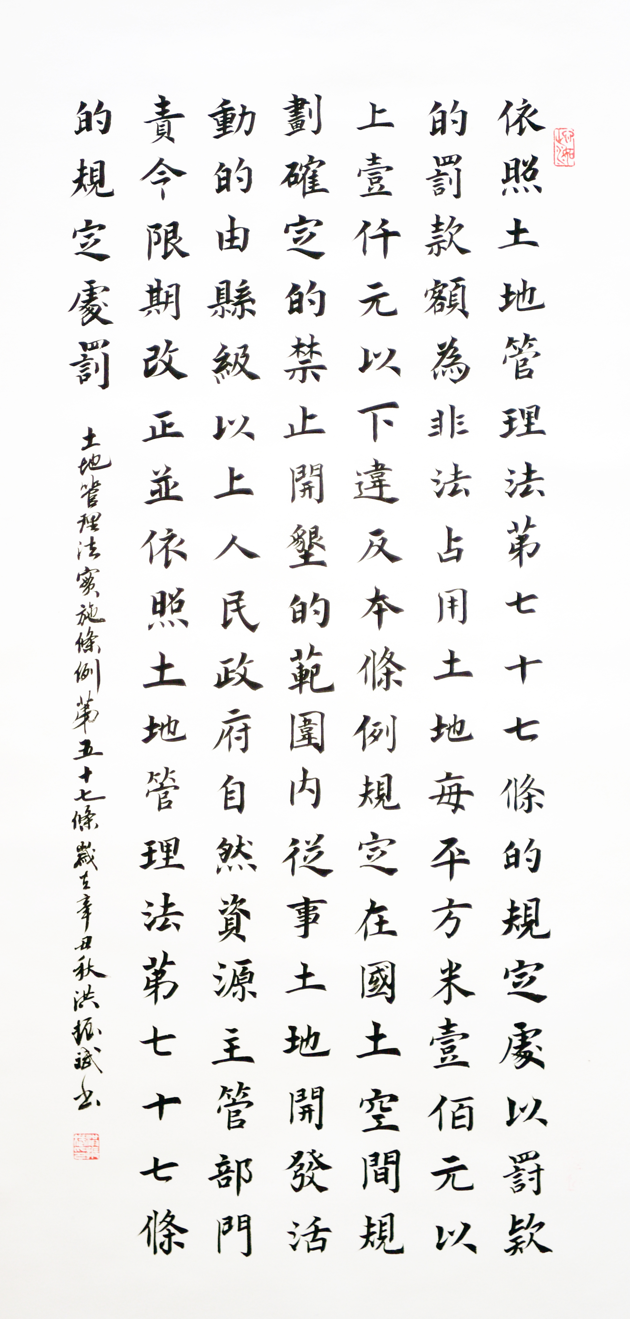 繼1600余位書法家參與書寫《中華人民共和國民法典》全部1260條法條之后,法治日報(bào)社聯(lián)合自然資源部法規(guī)司、自然資源部書畫研究會(huì)和北京昌平書法家協(xié)會(huì),將筆端對(duì)準(zhǔn)土地管理“一法一條例”,即《中華人民共和國土地管理法》和《中華人民共和國土地管理法實(shí)施條例》。