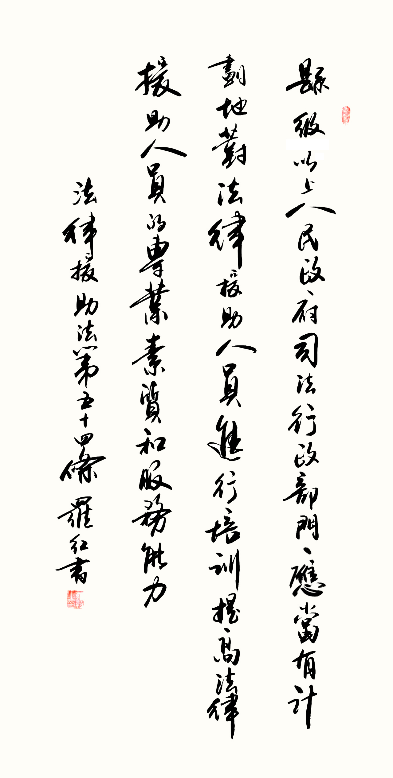 “書(shū)·法”活動(dòng)旨在為創(chuàng)新法治宣傳教育,多開(kāi)一點(diǎn)腦洞、多花一點(diǎn)心思、多出一點(diǎn)力量、多做一點(diǎn)貢獻(xiàn),引領(lǐng)和推動(dòng)更多的人拿起筆來(lái)學(xué)法、寫法,在不斷“書(shū)·法”過(guò)程中,提升自身的法治素養(yǎng),在全社會(huì)弘揚(yáng)法治精神。