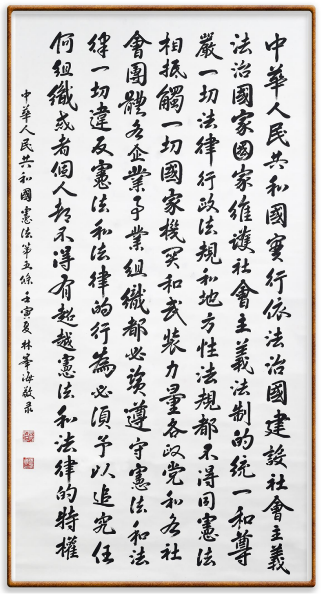 繼《中華人民共和國民法典》《中華人民共和國土地管理法》《中華人民共和國土地管理法實施條例》《中華人民共和國法律援助法》之后,法治日報社聯(lián)合北京市司法局、北京書法家協(xié)會,將筆端對準《中華人民共和國憲法》和《中華人民共和國行政處罰法》。