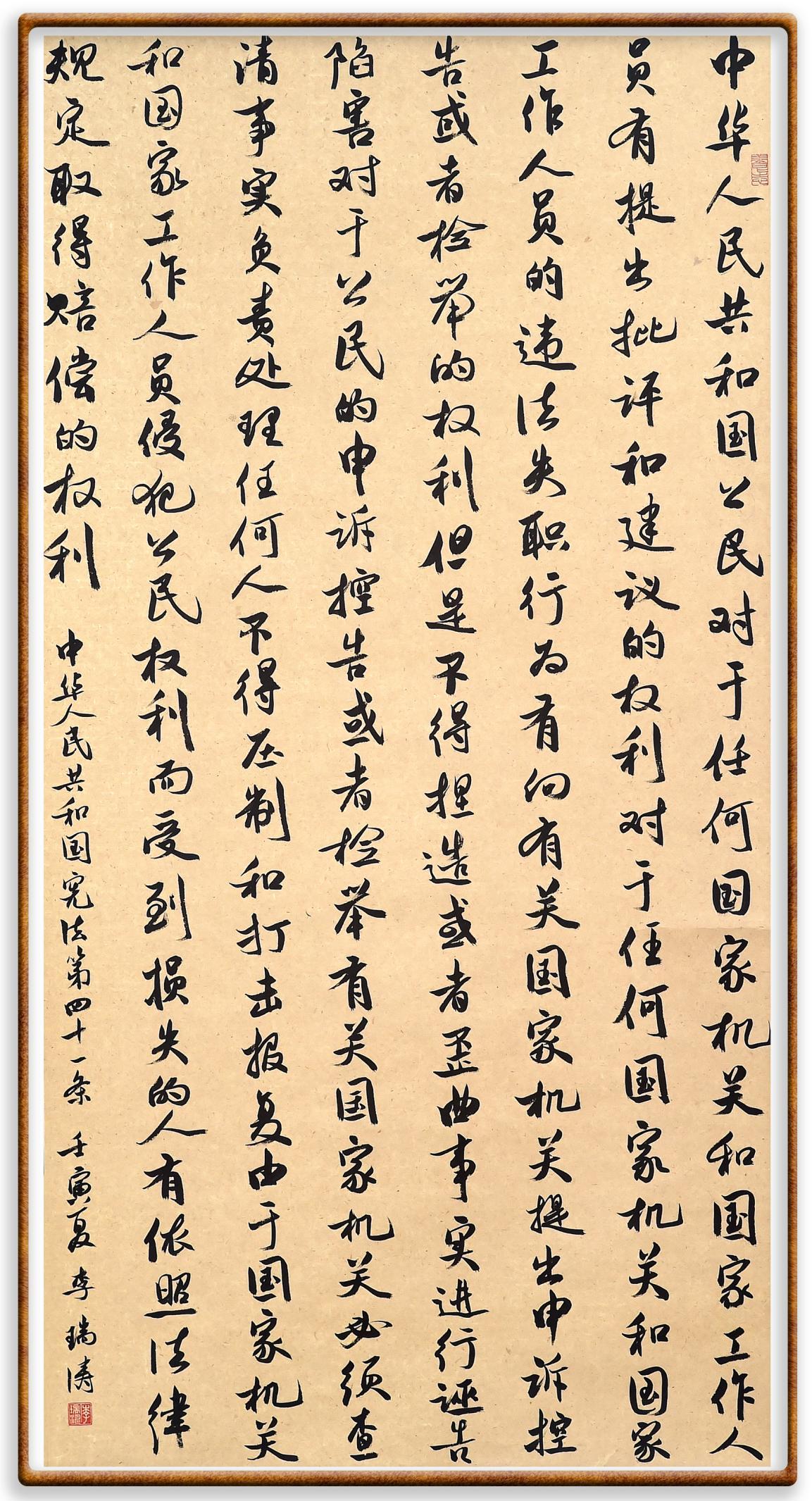 繼《中華人民共和國民法典》《中華人民共和國土地管理法》《中華人民共和國土地管理法實施條例》《中華人民共和國法律援助法》之后,法治日報社聯(lián)合北京市司法局、北京市書法家協(xié)會,將筆端對準《中華人民共和國憲法》和《中華人民共和國行政處罰法》。