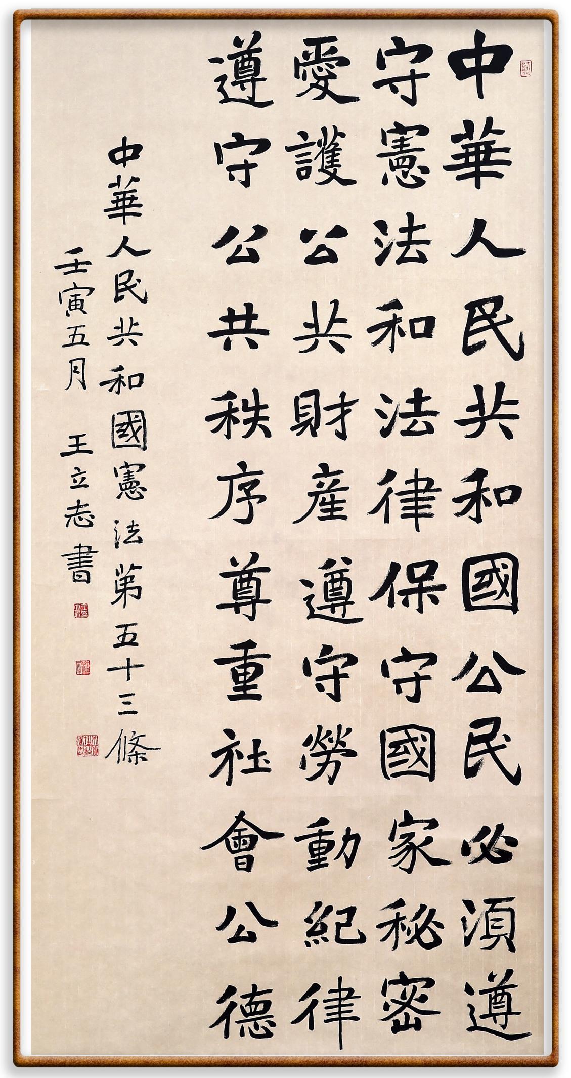 繼《中華人民共和國民法典》《中華人民共和國土地管理法》《中華人民共和國土地管理法實(shí)施條例》《中華人民共和國法律援助法》之后,法治日報(bào)社聯(lián)合北京市司法局、北京書法家協(xié)會,將筆端對準(zhǔn)《中華人民共和國憲法》和《中華人民共和國行政處罰法》。