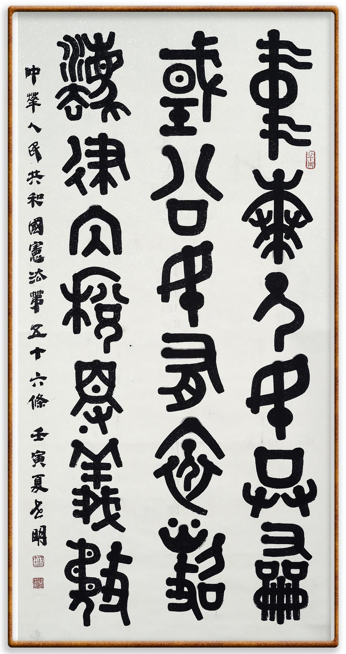 繼《中華人民共和國(guó)民法典》《中華人民共和國(guó)土地管理法》《中華人民共和國(guó)土地管理法實(shí)施條例》《中華人民共和國(guó)法律援助法》之后,法治日?qǐng)?bào)社聯(lián)合北京市司法局、北京書(shū)法家協(xié)會(huì),將筆端對(duì)準(zhǔn)《中華人民共和國(guó)憲法》和《中華人民共和國(guó)行政處罰法》。