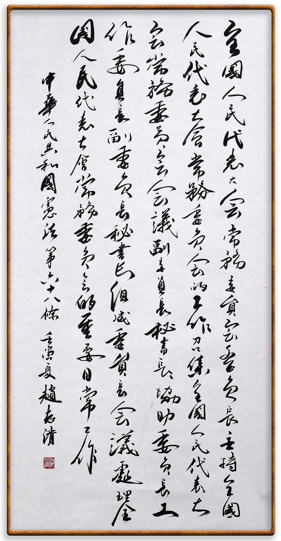 繼《中華人民共和國(guó)民法典》《中華人民共和國(guó)土地管理法》《中華人民共和國(guó)土地管理法實(shí)施條例》《中華人民共和國(guó)法律援助法》之后,法治日?qǐng)?bào)社聯(lián)合北京市司法局、北京書(shū)法家協(xié)會(huì),將筆端對(duì)準(zhǔn)《中華人民共和國(guó)憲法》和《中華人民共和國(guó)行政處罰法》。