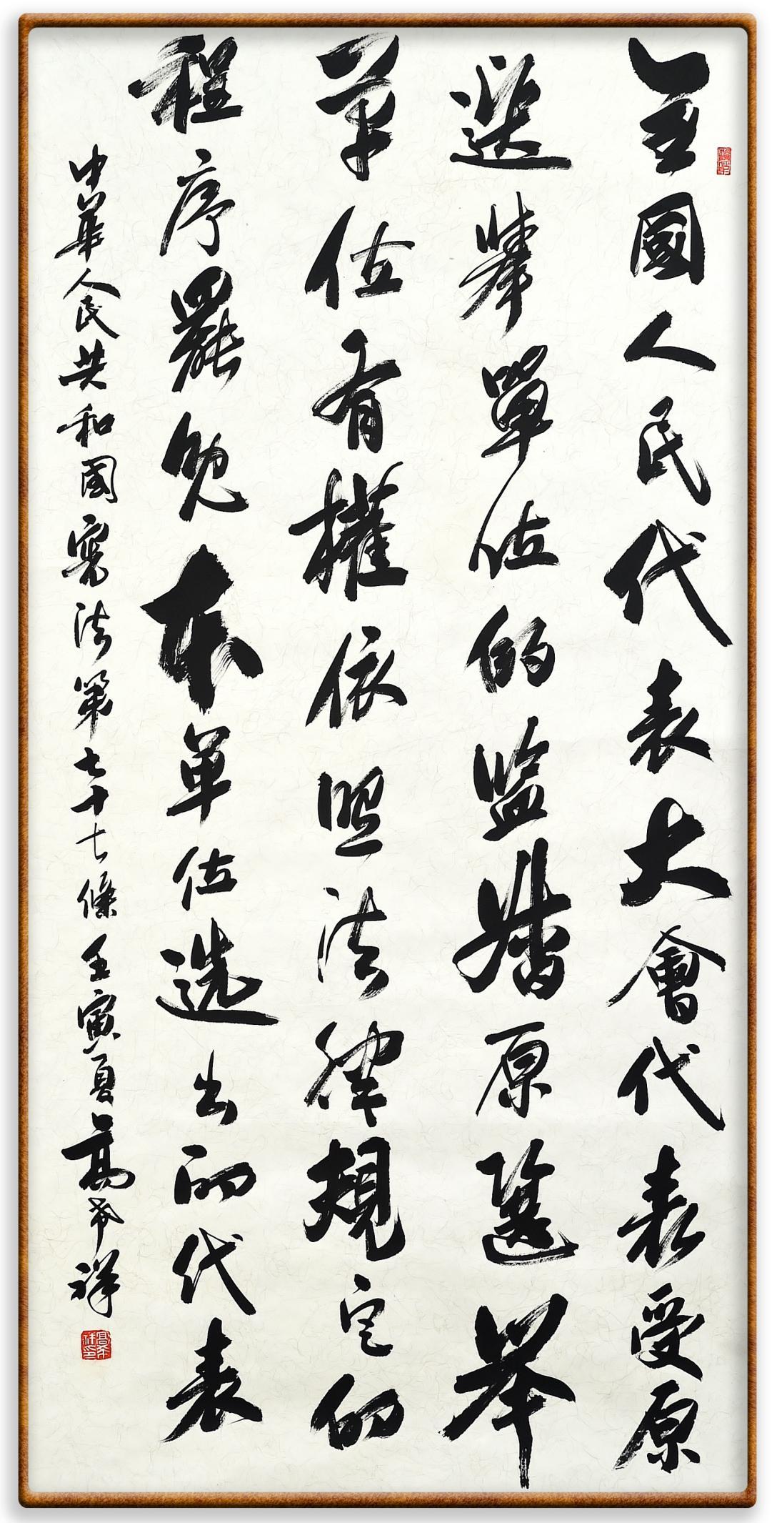 繼《中華人民共和國民法典》《中華人民共和國土地管理法》《中華人民共和國土地管理法實(shí)施條例》《中華人民共和國法律援助法》之后,法治日?qǐng)?bào)社聯(lián)合北京市司法局、北京書法家協(xié)會(huì),將筆端對(duì)準(zhǔn)《中華人民共和國憲法》和《中華人民共和國行政處罰法》。
