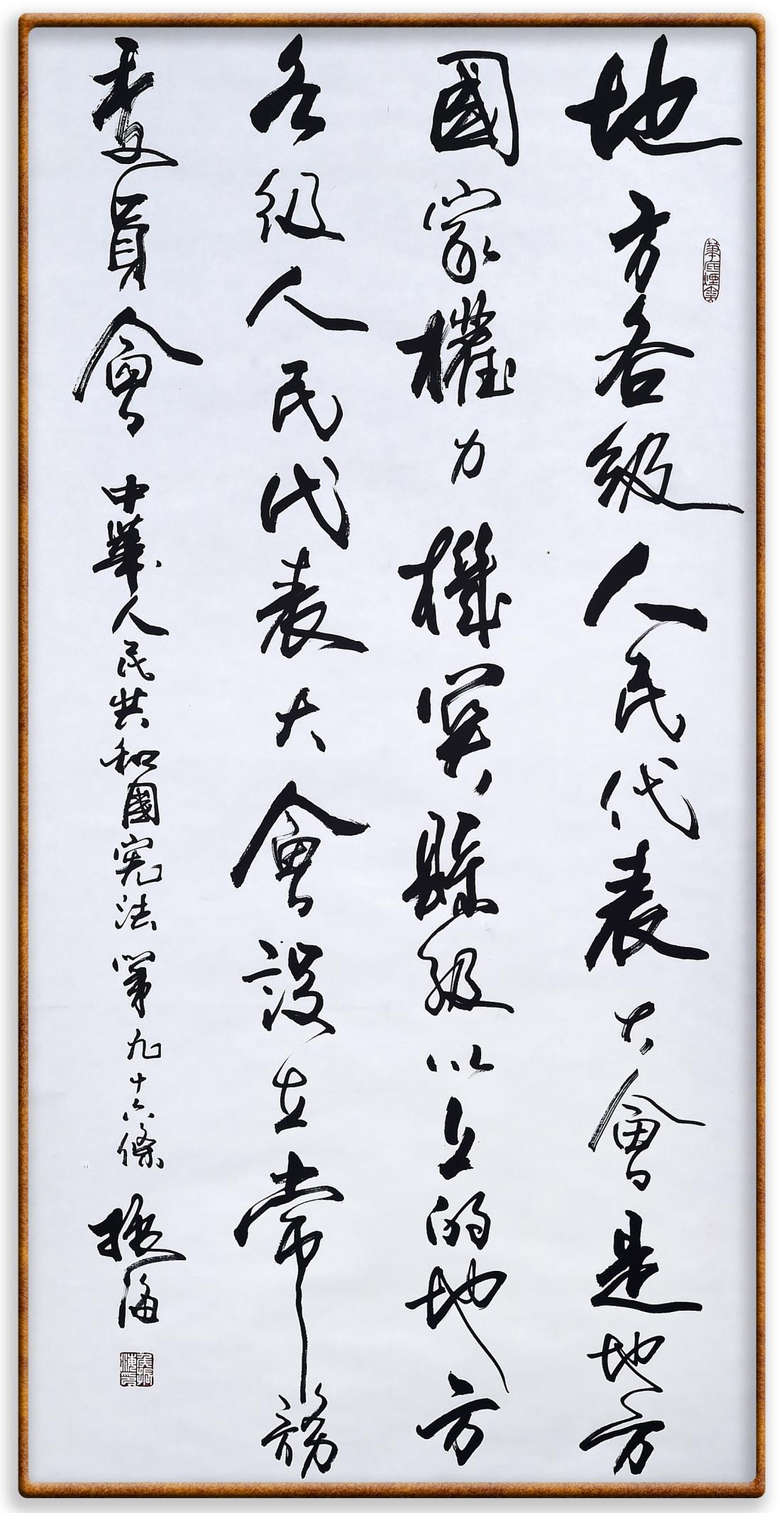 繼《中華人民共和國民法典》《中華人民共和國土地管理法》《中華人民共和國土地管理法實施條例》《中華人民共和國法律援助法》之后,法治日報社聯(lián)合北京市司法局、北京書法家協(xié)會,將筆端對準(zhǔn)《中華人民共和國憲法》和《中華人民共和國行政處罰法》。