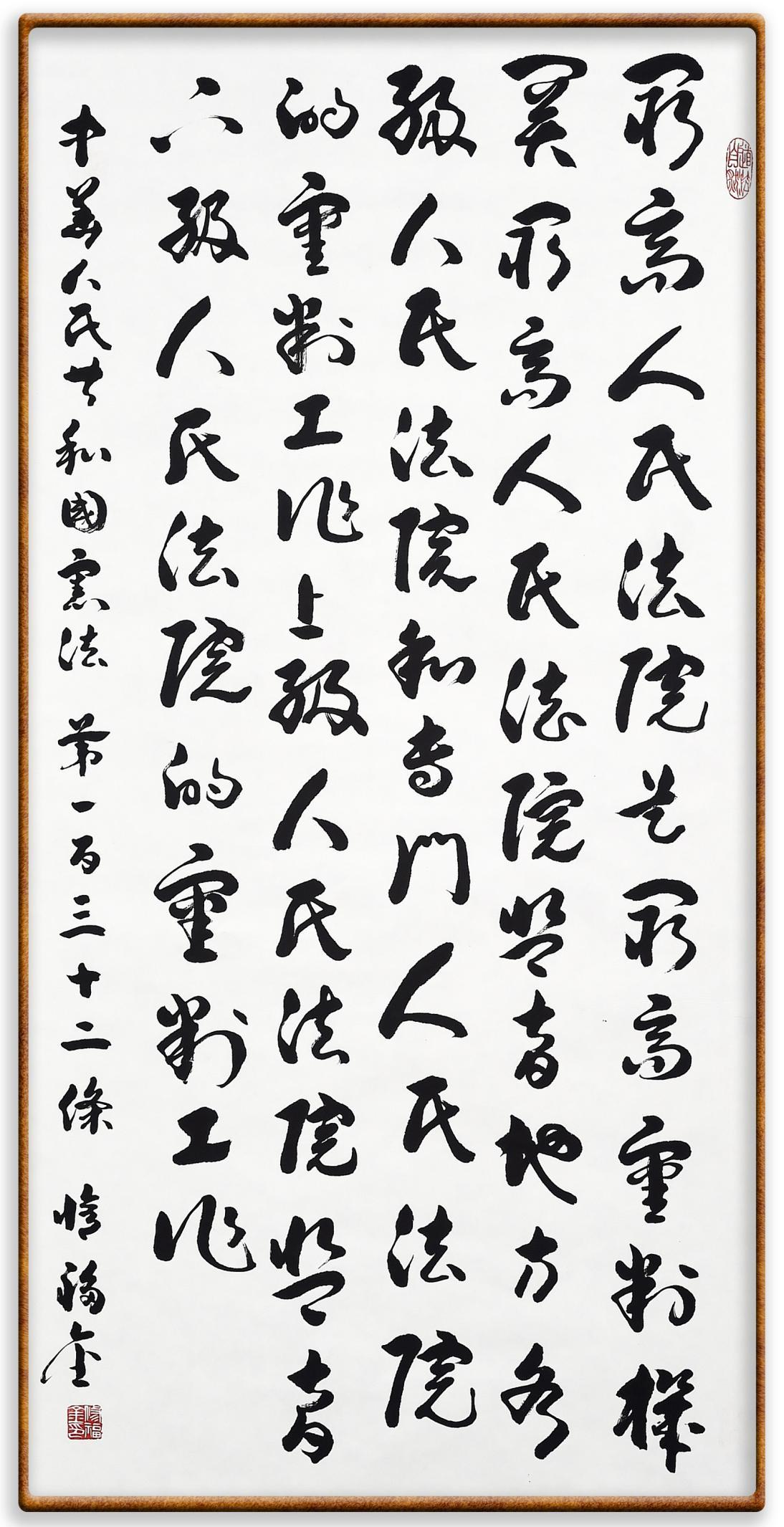 繼《中華人民共和國民法典》《中華人民共和國土地管理法》《中華人民共和國土地管理法實(shí)施條例》《中華人民共和國法律援助法》之后,法治日報(bào)社聯(lián)合北京市司法局、北京書法家協(xié)會(huì),將筆端對準(zhǔn)《中華人民共和國憲法》和《中華人民共和國行政處罰法》。