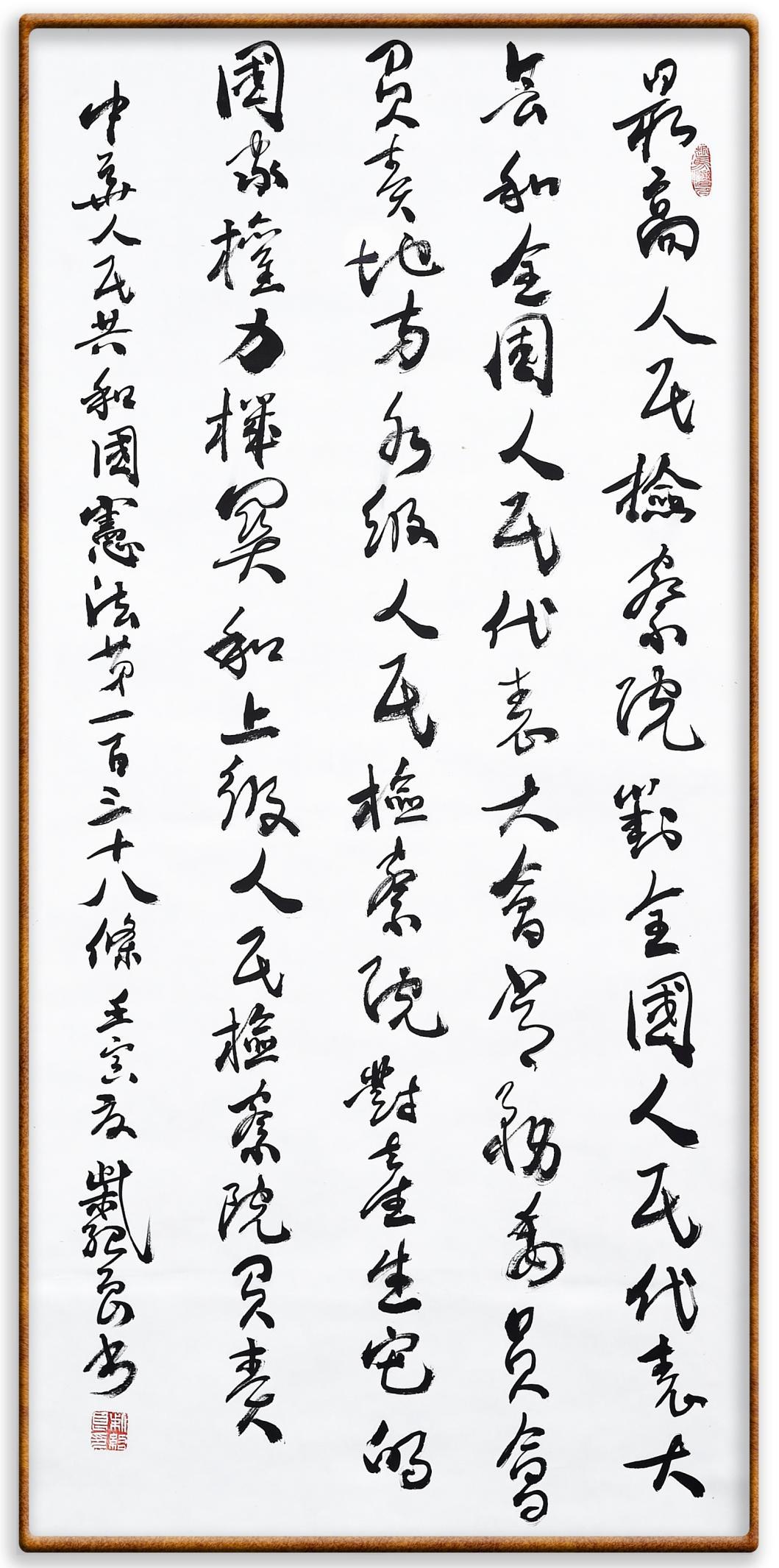繼《中華人民共和國民法典》《中華人民共和國土地管理法》《中華人民共和國土地管理法實施條例》《中華人民共和國法律援助法》之后,法治日報社聯(lián)合北京市司法局、北京書法家協(xié)會,將筆端對準(zhǔn)《中華人民共和國憲法》和《中華人民共和國行政處罰法》。