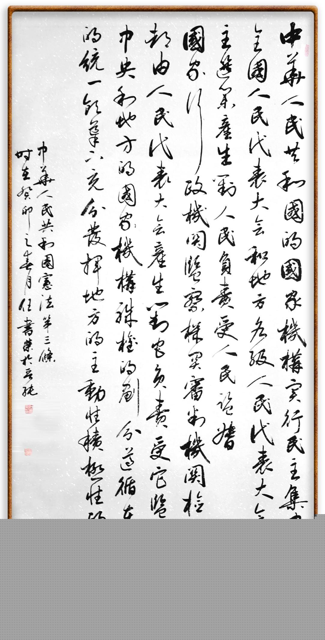 繼《中華人民共和國(guó)民法典》《中華人民共和國(guó)土地管理法》《中華人民共和國(guó)土地管理法實(shí)施條例》《中華人民共和國(guó)法律援助法》之后,法治日?qǐng)?bào)社聯(lián)合北京市司法局、北京書(shū)法家協(xié)會(huì),將筆端對(duì)準(zhǔn)《中華人民共和國(guó)憲法》和《中華人民共和國(guó)行政處罰法》。