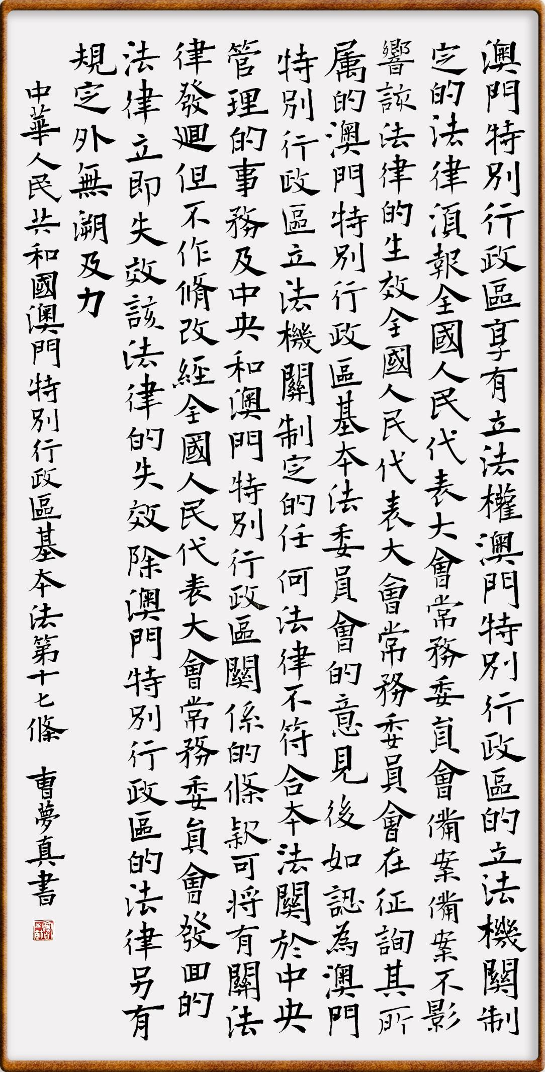 澳門基本法第十七條 澳門特別行政區(qū)享有立法權。