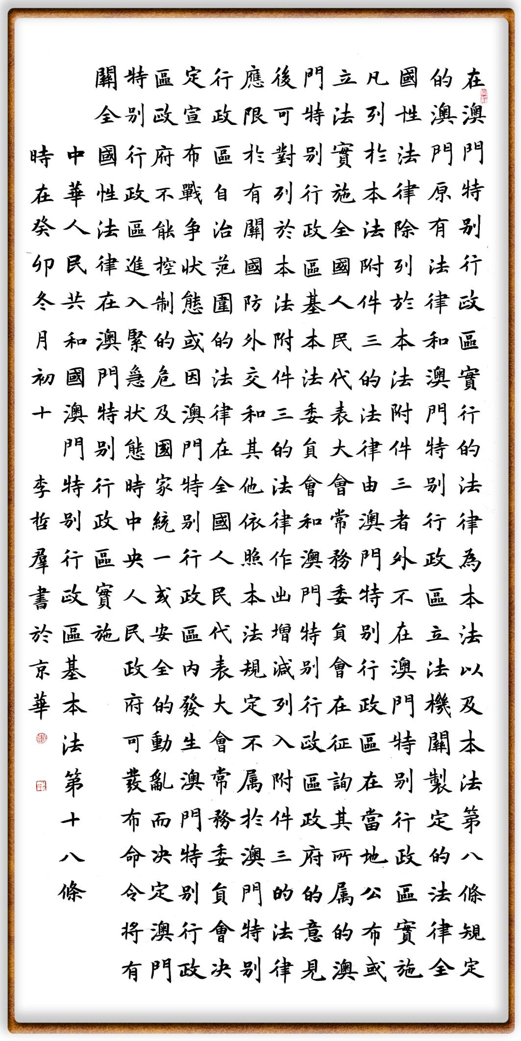 《中華人民共和國(guó)澳門特別行政區(qū)基本法》為澳門特別行政區(qū)各項(xiàng)事業(yè)發(fā)展提供了全方面的法治保障,對(duì)譜寫澳門“一國(guó)兩制”實(shí)踐新篇章具有重要意義。為學(xué)習(xí)好、宣傳好、貫徹好、實(shí)施好這部法律,繼《中華人民共和國(guó)民法典》《中華人民共和國(guó)憲法》《信訪工作條例》等法律法規(guī)之后,法制日?qǐng)?bào)社聯(lián)合人和啟邦顯輝(橫琴)聯(lián)營(yíng)律師事務(wù)所,將筆端對(duì)準(zhǔn)《中華人民共和國(guó)澳門特別行政區(qū)基本法》。