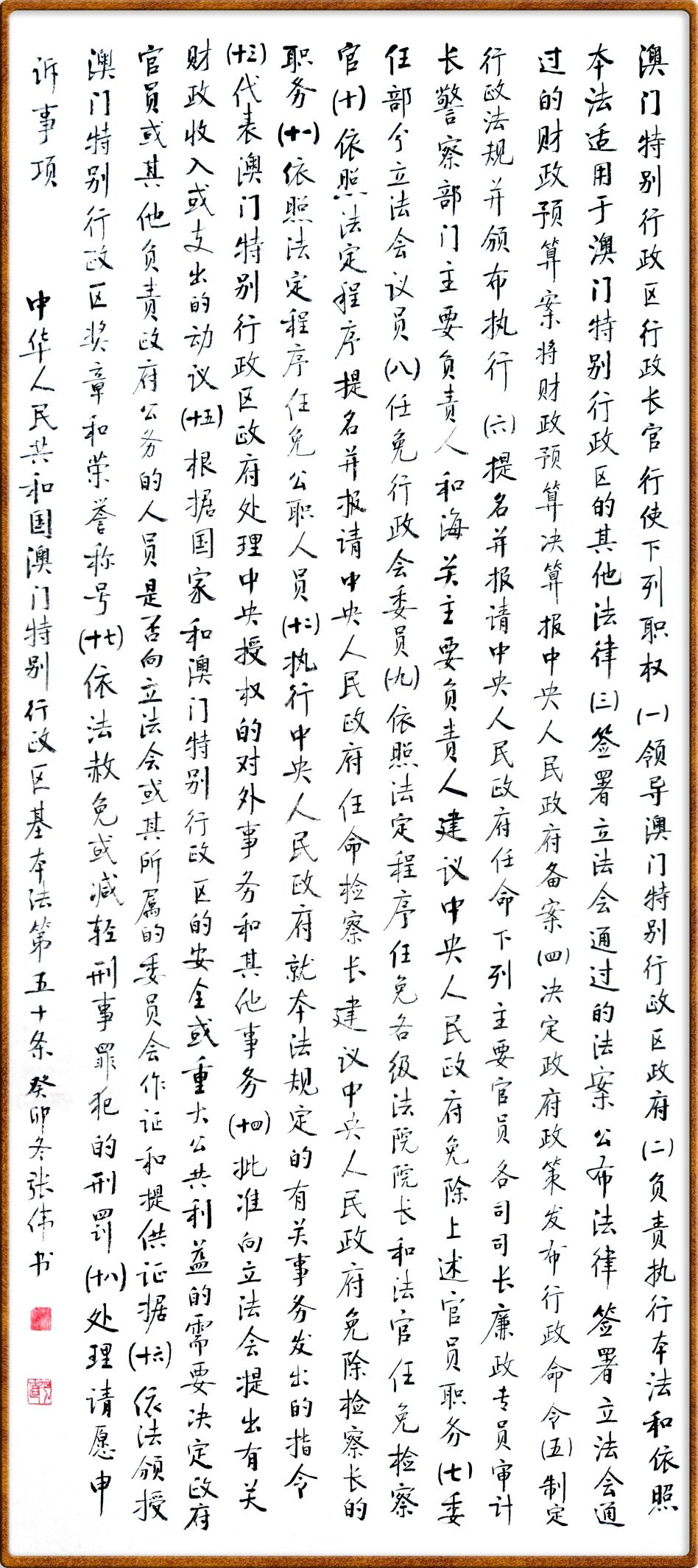 澳門基本法第五十條 澳門特別行政區(qū)行政長官行使下列職權(quán):